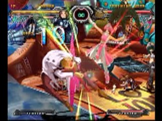 『ギルティーでは6割までなら普通に与えられるが、 実際に高破壊力コンボでダメージを与えてみた。 1枚目→溜め6HSをガンガン使ってみて