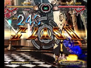 俺の場合はトレモ以外やらないので 『時間』 でしかこれらのモードは出ない。 『SLASH』 でも同く時間で 『金キャラ』 や 『SPカラー』 を出していた。 まあ、本来 『EXキャラ』 はコンボ対象外なので触れないが、 でもちょっと気になったので実際にプレイをし、技の確認をしてみた。 ・・・何かつまらんな。 一部完全に被るFB技は通常劣化版?みたいな存在でFB版はなし。 て言うか以前のEXからFB付けただけの様な適当調整の様に感じられた。 もうEXは終わったな。始まってもいないけどね。 同時に次作への期待感も感じられなくなった。 ある程度吐き出した感のある 『AC』 だったが、 そもそもFB技の元はEXにあったものを拝借・・・な物も多かったので、 新たにEXには新技がないのは次作へのやる気のなさみたいに感じる。 別にEXなんかどうでもいいんだけど、 ある種今作でギルティー終わりじゃないかと思わざるを得ない。 まあ、きちんとその辺は考えていると思うけどね。OEE PR 通常ヒットでもよろける技と言うのはコンボ構成上扱いが難しい。 実際に 『カイ』 の 『6HS』 を例に挙げて考える。 で、この技の特徴は 1、発生は若干遅いが隙が多少少ない。 2、比較的長いよろけ時間を持つ。 3、発生するヒットバックはかなり小さい。 とある。この事から一応だが次の事もできてしまう。 『ダッシュ6HS×N』 もちろんよろけ回復は無しにしないとEIPAは成立しないが、 元々俺が作っている連続技はよろけ回復を一切なしでやっている。 だが、個人的には 『面白いかどうか』 が採用基準なので、 少なくとも面白みを感じない 『ダッシュ6HS×N』 のEIPAは使う気がない。 でも、だからと言ってこの技を使わないというのもよろしくない。 なのでどのように使うかをよく考えないといけない。 ・・・まあ、正確に言えば 『どうすれば面白く見えるか』 を重点に考えるのだが、 それゆえにこのような技の取り扱いと言うものははかなり難しくなるのである。 1枚目→ 『カイ』 の 『6HS』 が 2枚目→画面端までならよろけ回復レベル1までなら繋がるが 3枚目→画面端ではよろけ回復無し限定で一応EIPA 一応だが、『6HS×N』 の連続技ならばよろけ回復レベル1で繋がるが、 その手の連続技はこのゲームではあまり価値がないのが悩みでもある。OEE ふう、とりあえず 『ソル』 は仮終了。 仮終了ってのは後もう一度見直したとき、手直しもあるかもしれないと言う意味で、 実際に完璧と思っていても見直せば新たな穴が見つかった事も少なくない。 だが、次に進まねばいけないので一度 『ソル』 は終了。 さて、『ソル』 のコンボをとりあえずまとめてみると 1、対カイ リヴォルヴァーループ JHS→2HS→JBR(FR)→JD→JBR→近S→JBR→ 近S→JBR(FR)→JD→JBR→立ちK→近S→タイラン 2、対しゃがみテスタ グランド×2 JHS→2HS→GF(FR)→立ちK→BB→GV→GF(FR)→BB→GV→ ファフニール→派生タイラン→JダッシュSW→2HS→BR→GFフェイント 3、対アバ アバ限→インストール JS→6HS→(ライオットFR)→ぶっきら→BB→ドライン→2HS→JBR→近S→ HSVV(RC)→JS→SW→近S→2HS→HSVV 4、対ポチョ ブリンガー・・・ 6HS→GF(FR)→BB×9→[GF(FR)→BB]×3→GF(FR)→JダッシュD→SW→ 近S→2HS→JK→JP→JP→JK→JHSVV 5、対ファウスト 爆弾コンボ 2HS(ファウスト爆弾)CH→(ファフニール)→派生タイラン→ドライン→(爆弾ヒット)→ GV→SW→2HS→JBR→2HS→JBR→近S→2HS→HSVV(RC)→ JダッシュHS→JBR(FR)→JHS→SW 6、対ジャム クリーン×N HS→2D→GV→SW×4→タイラン(RC)→JS→JHS→SW→JD→JS→JHS→JBR 7、対しゃがみポチョムキン 永久・・・ (ダッシュ)HS×4→JダッシュS→JS→JHS→[近S→2S→ダッシュ]×3→ 立ちK→近S→2HS→[JダッシュS→JS→JHS→ダッシュ2HS]×40→ JダッシュS→JS→JD→SW→近S→HSVV 字だけだとよく分からないね。一応永久コンボの画像だけど貼ってみる 1枚目→100%ドライン発動 2枚目→永久途中 3枚目→フィニッシュも決まりK.O さて、次は 『カイ』 か・・・完成までのペースはいいのか悪いのか・・・OEE
